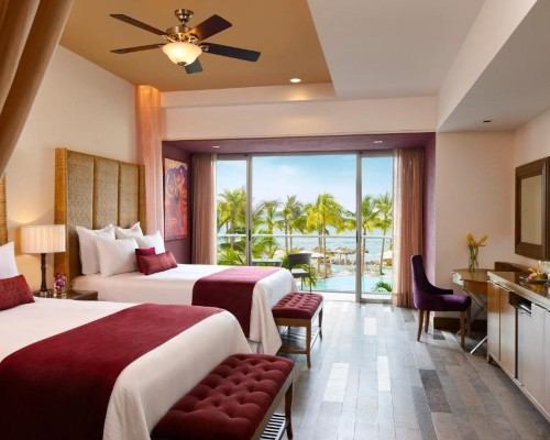 Resort moderno frente al mar con suites contemporáneas, ambiente vibrante y vistas al Pacífico, ideal para pareja.